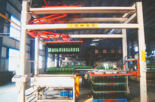 MD1200*1000型夾持式自動(dòng)碼垛機(jī)廣泛應(yīng)用于長(zhǎng)頸玻璃瓶罐的自動(dòng)碼垛機(jī)包裝,排瓶分自然排瓶和機(jī)械排瓶?jī)煞N形式,該機(jī)采用PLC+觸摸屏控制,自動(dòng)化程度高,操作簡(jiǎn)便,可大大減少工人數(shù)量并降低勞動(dòng)強(qiáng)度。系統(tǒng)采用制動(dòng)馬達(dá)控制,準(zhǔn)確無(wú)誤地按預(yù)先設(shè)定的位置夾瓶和放瓶,采用氣囊?jiàn)A瓶平穩(wěn)可靠且無(wú)人工污染。